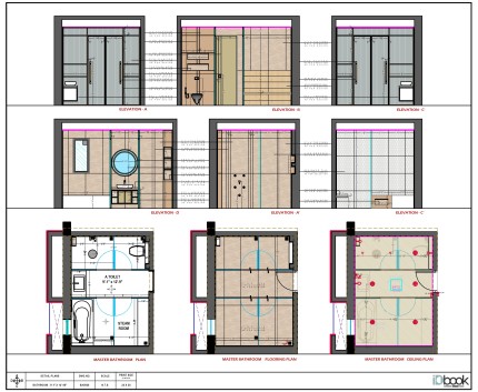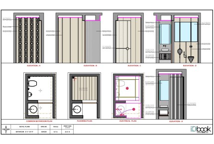 The Scandinavian conceptualized design has a modern yet simple earth look. This is an accurate combination of Grey textured tile and a wooden Tile Finish with black Sanitary ware accessories along with the wooden finish PVC plank ceiling. The look of the basin counter has been enhanced with the use elegant circular mirror.