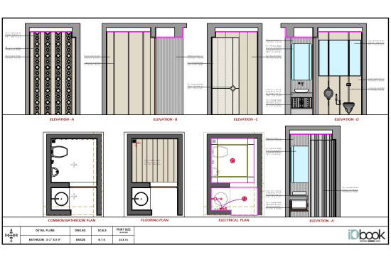 Polished marble surfaces dominate the room, featuring dramatic black and charcoal veining that flows seamlessly across the walls and floor, creating a sculptural, continuous effect. Vertical accent panels with geometric detailing add rhythm and depth, breaking up the marble with subtle texture and a contemporary edge. The monochrome palette—ivory, black, and soft gray—is elevated by precise linear lighting recessed into the ceiling, which highlights the verticality of the space and enhances its clean lines.Minimalist, wall-mounted sanitary fixtures keep the floor visually open, reinforcing the sleek, uncluttered aesthetic. Reflections from mirrored surfaces and glossy finishes amplify light and make the narrow space feel taller and more expansive. Overall, the design feels bold, refined, and high-end, blending modern luxury with dramatic contrast and meticulous detailing—ideal for a statement powder room or upscale hospitality interior.