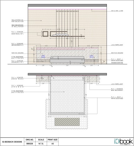 A refined blend of texture and geometry defines this elegant bed back wall. Vertical wooden slats create a striking central panel, adding warmth and rhythm, while the surrounding soft-toned panels introduce a subtle structured pattern that enhances depth and sophistication. The balanced composition is elevated by sleek pendant lights that frame the bed beautifully, casting a warm ambient glow.