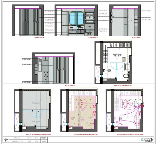 This bathroom is designed as a refined luxury retreat, blending warm marble tones with contemporary elegance. The space is defined by rich stone finishes in soft beige and deep veined marble, creating a balanced contrast that feels both opulent and calming.A floating vanity with fluted detailing enhances the modern aesthetic, while the sculptural black countertop basin adds a bold, sophisticated focal point. The backlit organic-shaped mirror casts a soft ambient glow, elevating the sense of depth and warmth.Fluted glass partitions subtly divide the space without blocking light, maintaining openness while adding texture and privacy.Recessed illuminated niches in the marble wall provide functional storage and highlight the natural veining, turning everyday essentials into design features.Soft ceiling lighting and a neutral palette create a spa-like ambiance, making the bathroom feel serene, elegant,and timeless—perfect for a premium residence or luxury suite.