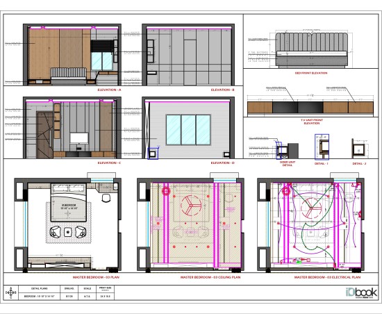 This modern bedroom is designed as a calm and refined retreat, blending warm wooden textures with soft neutral tones. The upholstered bed with a sleek bench anchors the space, while the vertical wood panel backdrop adds depth and architectural elegance. Ambient lighting, minimal décor, and thoughtfully integrated storage create a balanced atmosphere of comfort and sophistication. A compact study nook and cozy window seating enhance functionality without disturbing the serene aesthetic, making this bedroom an ideal blend of contemporary luxury and everyday comfort.