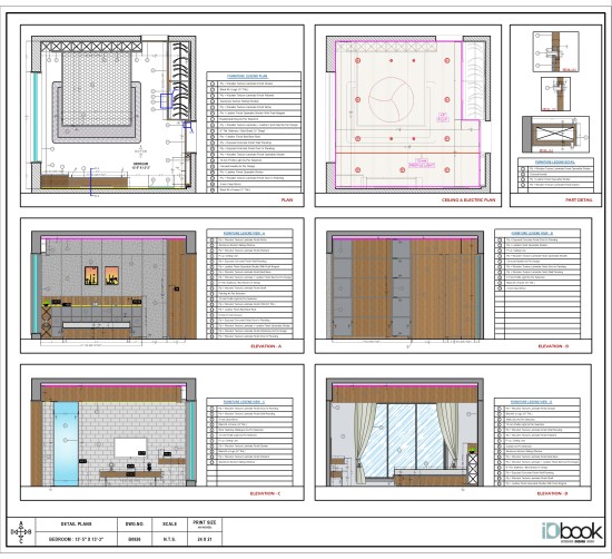 This bedroom embodies a sleek modern–industrial aesthetic, blending clean lines with warm natural textures for a refined yet inviting atmosphere.The space is anchored by a low-profile upholstered bed in soft grey tones, layered with textured bedding that enhances comfort and visual depth.A striking paneled headboard wall integrates subtle backlit niches, providing both ambient lighting and display space while adding architectural interest. The contrast between matte grey panels and rich wooden surfaces creates a balanced composition that feels contemporary and sophisticated.The exposed concrete ceiling with recessed spotlights reinforces the industrial character, while warm lighting elements soften the overall mood. Floor-to-ceiling wooden wardrobes with seamless paneling maintain a clean, uncluttered look and offer ample storage.Neutral flooring, soft rugs, and minimal décor complete the design, resulting in a calm, stylish retreat that perfectly merges modern elegance with industrial charm.